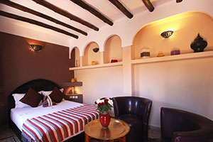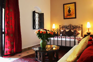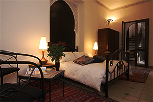 Cette chambre avec sa très belle terrasse privative ou vous pourrez déguster un verre de thé va vous enchanter. Elle possède une magnifique salle de bain a colonne en tadelak.