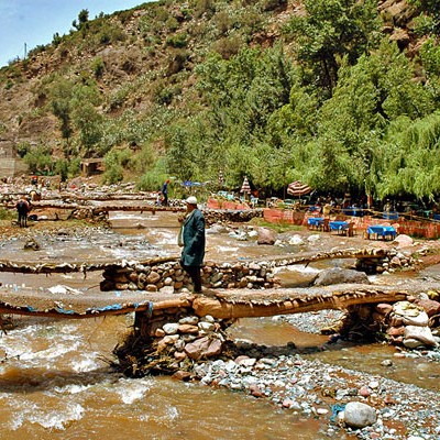 Vallée de l'Ourika probablement le domaine le plus visité dans les montagnes de l'atlas une 1h30 de route de Marrakech, le long de la vallée, les rives de la rivière Ourika sont généreusement ombragée par des peupliers et autres saules pleureurs.